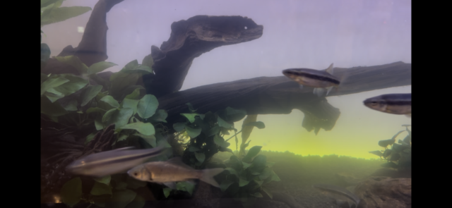 川魚の水槽はそれはそれで見ごたえはあるのですが、通常弊社で扱うことの多い熱帯魚に比べると比較的地味な色合いの魚種が多いので、その辺りが少々ネックとなりました。