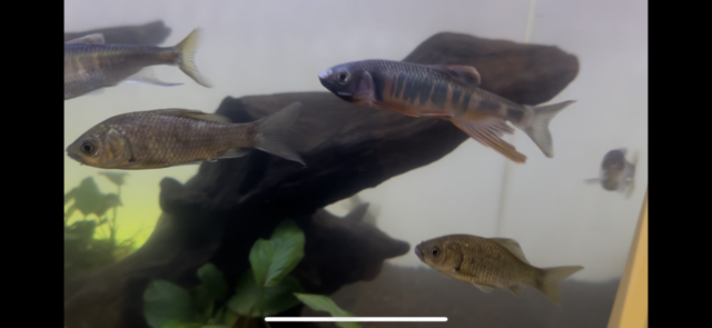 水槽A(大型種):カマツカ、オイカワ、ボウズハゼ、ギンブナ、シマドジョウ等