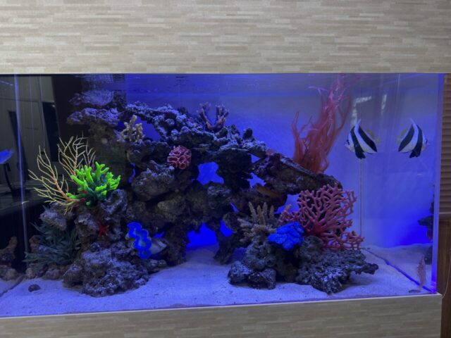 設置後にお聞きした話では、想定していた以上にアクアリウムをご自身で管理されている方や、元々興味をお持ちの関係業者様が多かったそうで、必要以上にお話が盛り上がる事もあるそうです(^^♪