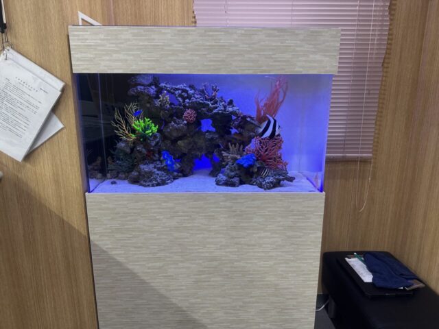 埼玉県幸手市会社入り口に特注海水魚水槽をレンタル施工させて頂きました